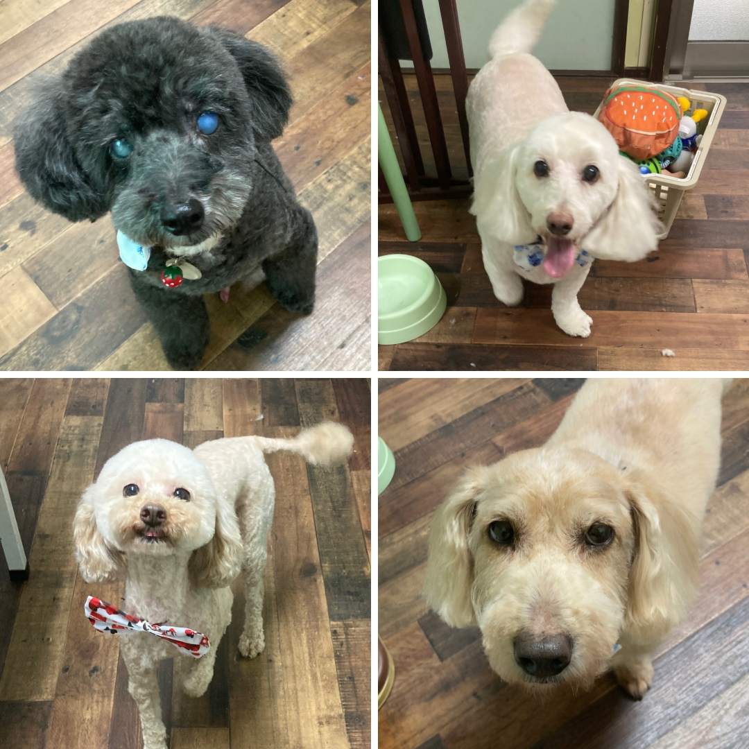 プードルの女の子とミックスの男の子。同じお家の子たちです。プードルの子はぴょんぴょん跳ねて来てくれる元気なかわいい子です😊ミックスの子はトリミングはゆううつそうで💦お父さんがお迎えに来るととっても嬉しそうでした。不安な気持ちがあるのに私の方にしっぽをふりふりしたがら来てなでさせてくれ、すごく嬉しいよ〜!ありがとう。