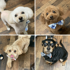 トイプーの男の子。なでてとお腹をごろ〜んと見せて待っています。その時間が私も好きで、なかなかトリミングが始まりません😆今日はお顔はスッキリカットしました。
